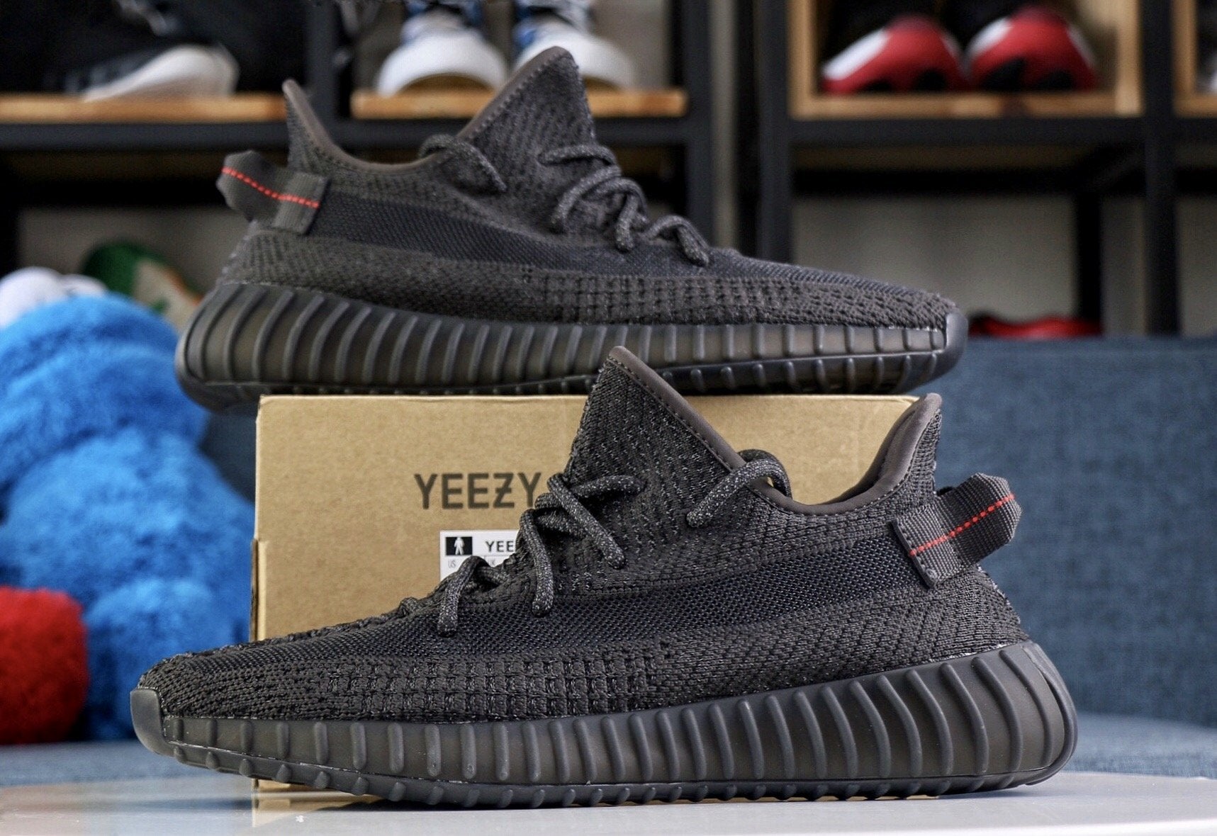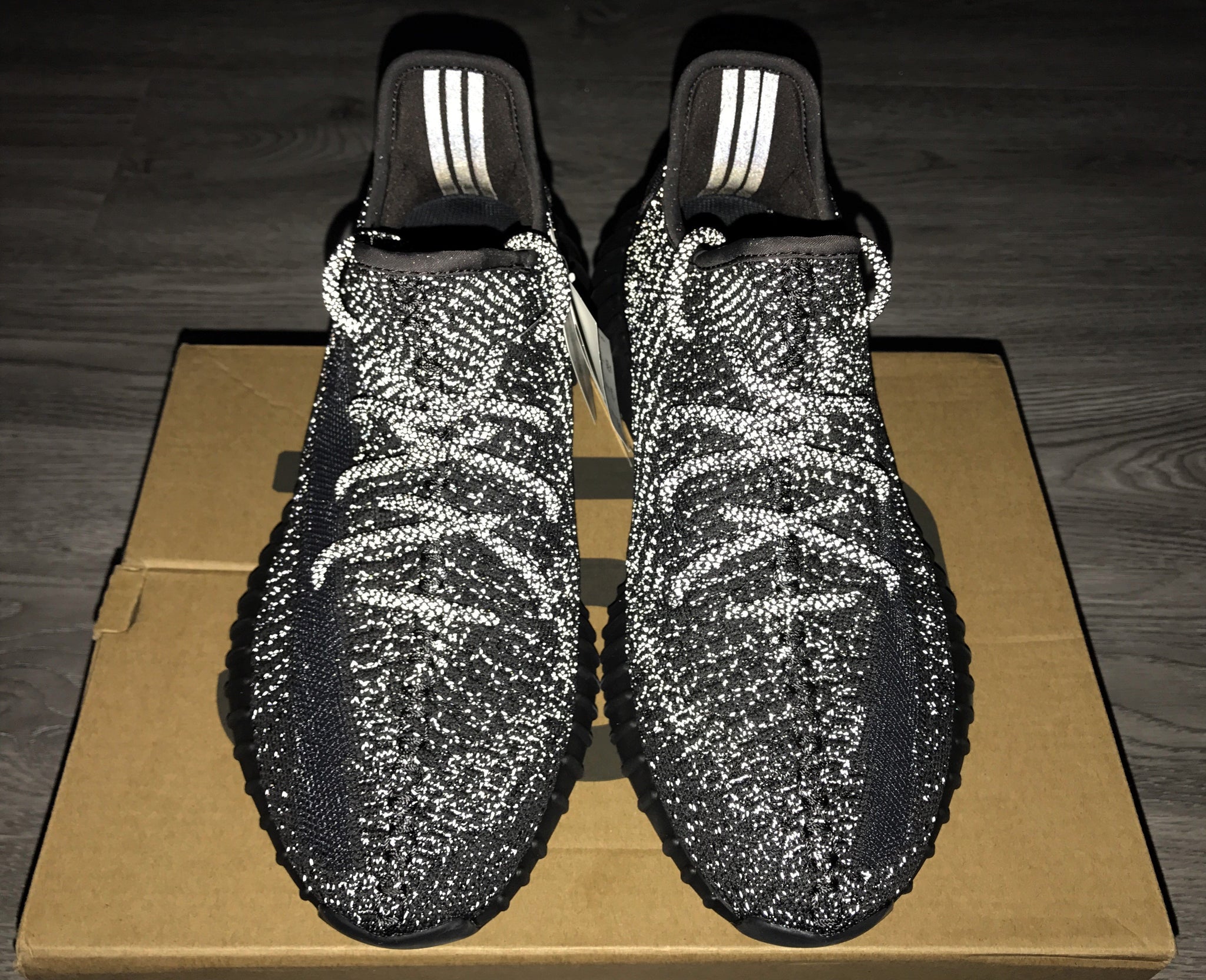 • The Yeezy Boost 350 V2 was first spotted at Kanye West's Yeezy Season 3 and released in September 2016. This 'Black Reflective' colorway touched down in June 2019 and casts the shoe's flexible Primeknit upper in what appears to be a solely black hue.