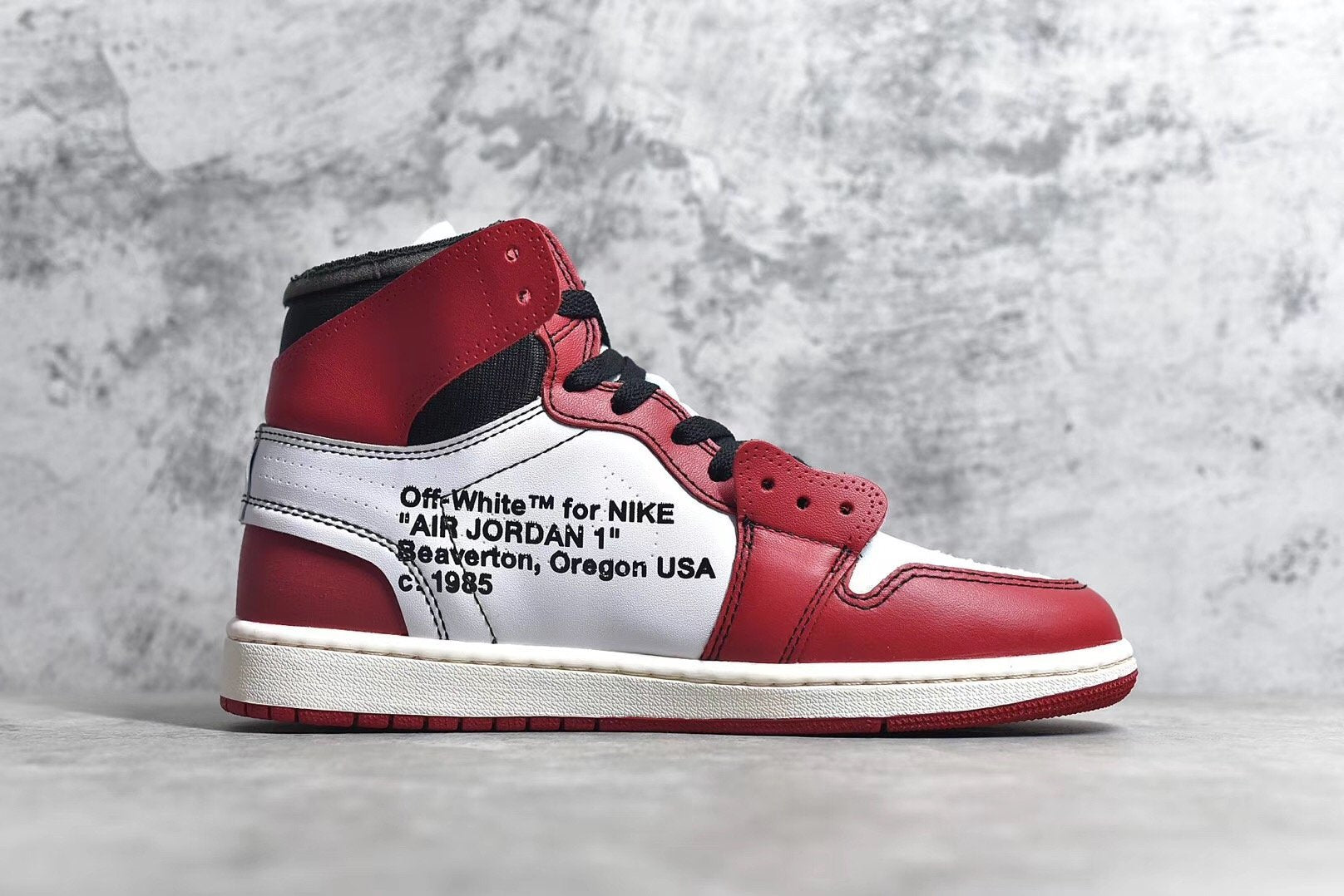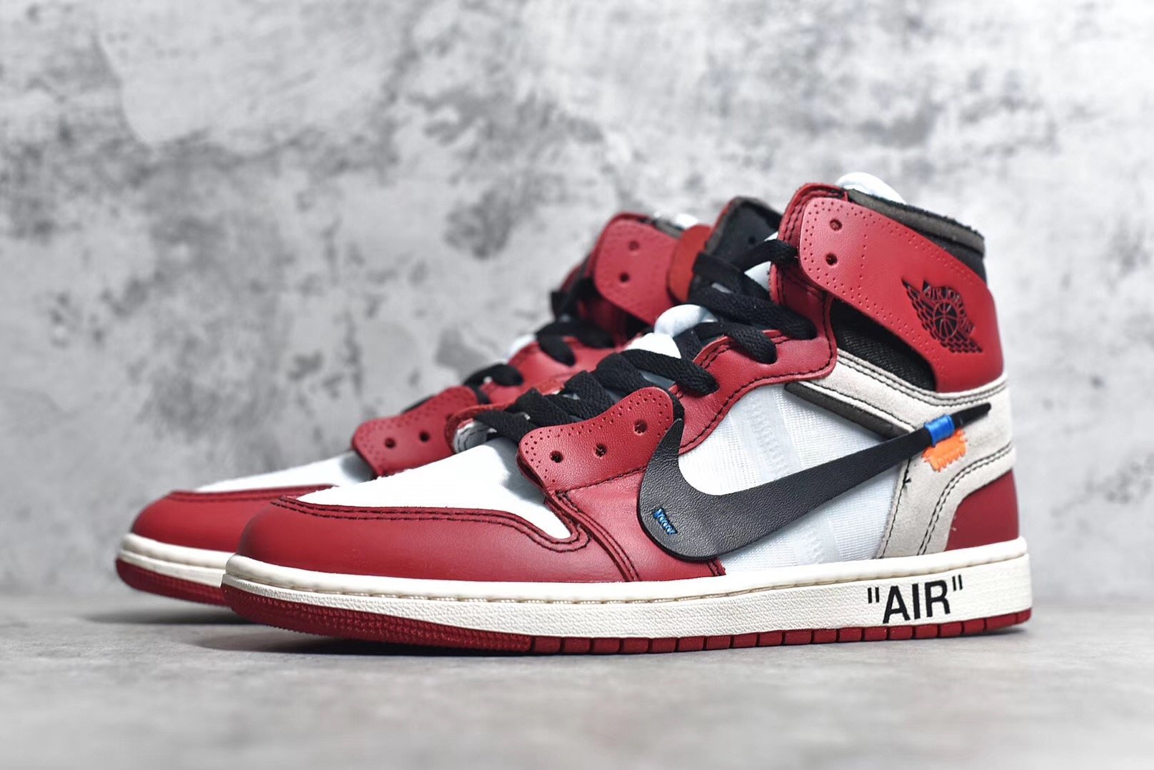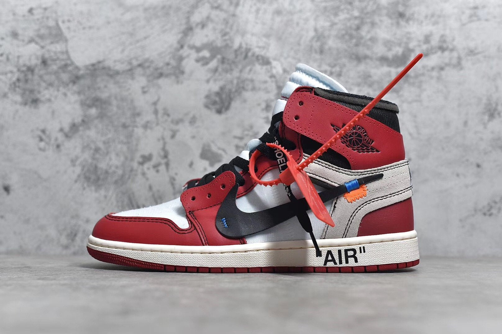 - The Off-White x Air Jordan 1 Retro High OG was one of the most highly anticipated footwear collaborations of 2017. It marked the first time Virgil Abloh, founder of the Milan-based fashion labled and Jordan Brand had teamed up. Nicknamed "The 10" edition, this pair comes in the original Chicago-themed white, black and varsity red colorway. Featuring a white, red and black-based deconstructed leather upper with a Swooshless medial side branded with "Off-White for Nike Air Jordan 1, Beaverton, Oregon, USA © 1985."