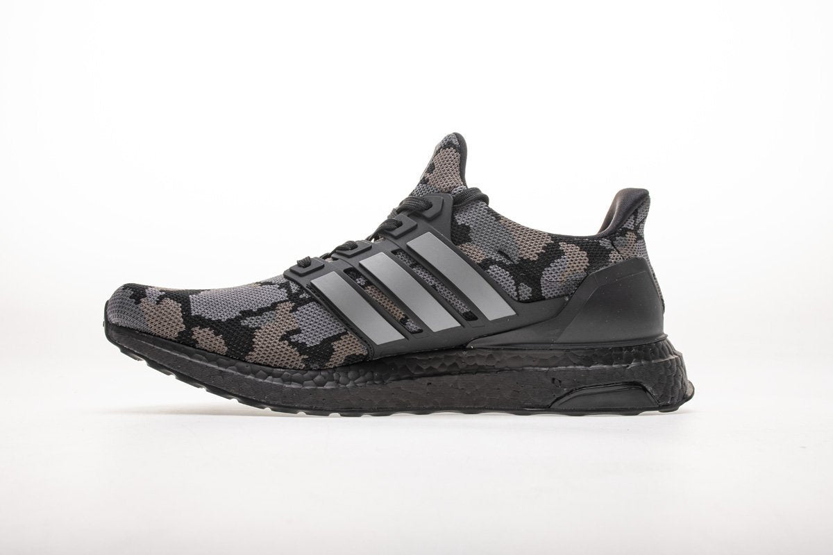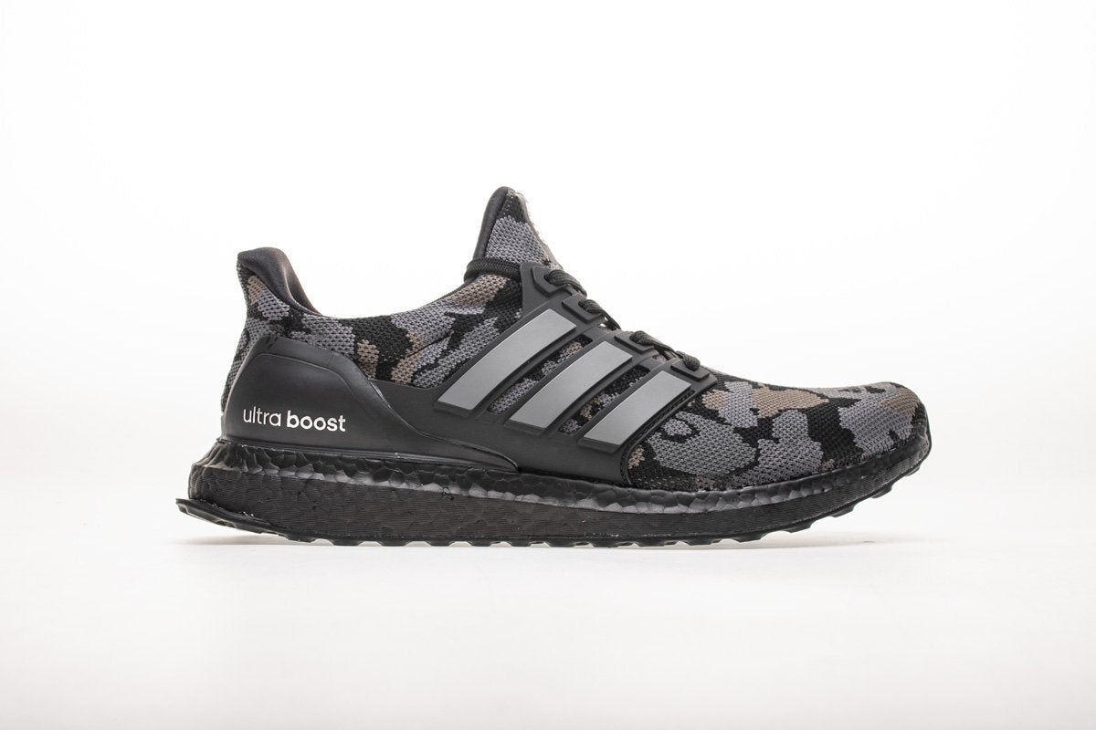 It’s always a great time when sneakerheads and streetwear gods unite, so grab the new adidas Ultra Boost 4.0 BAPE Camo Black and be a part of history. This Ultra Boost 4.0 comes with a black camo upper, three grey adidas stripes, black midsole, and black sole.