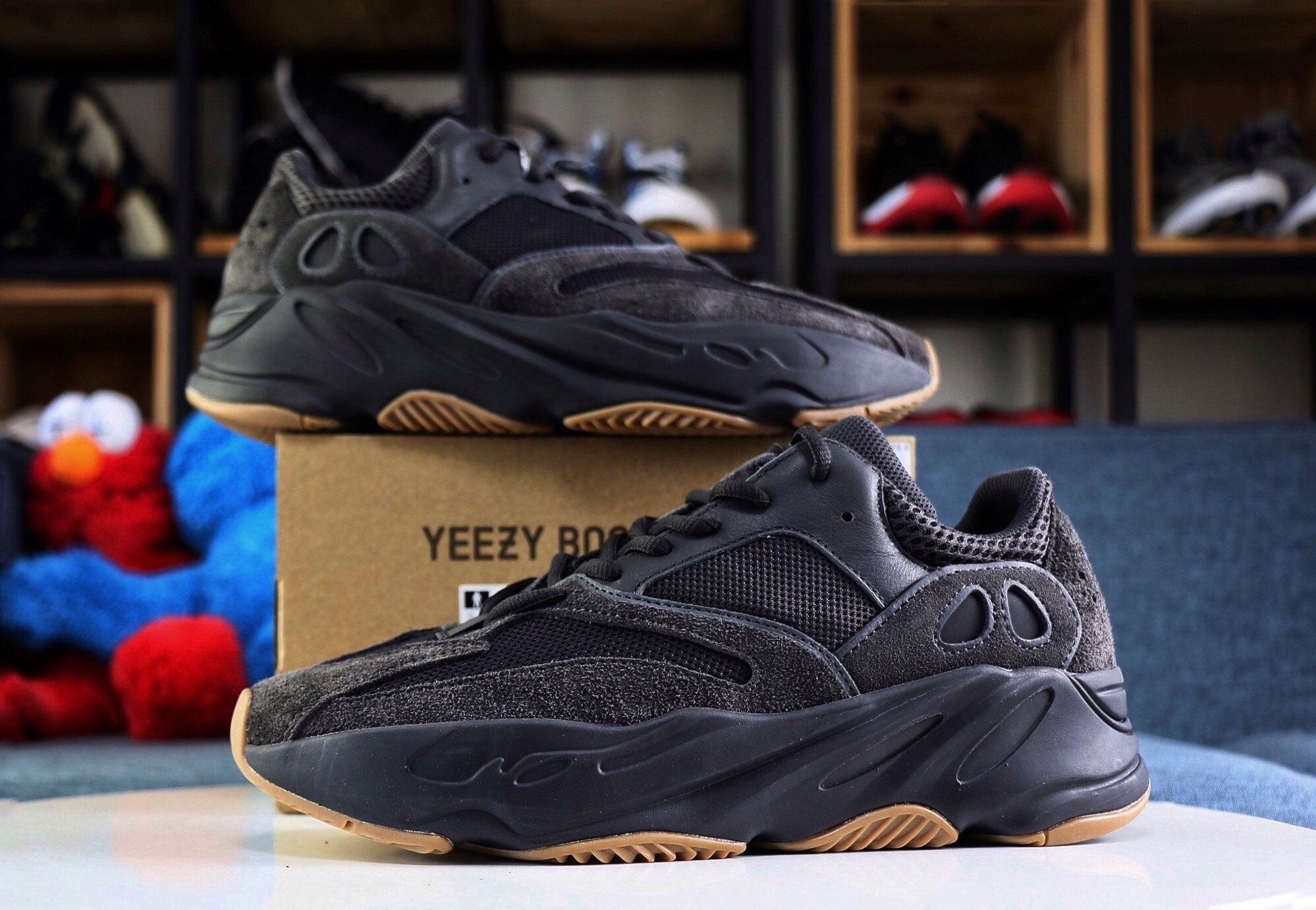 The Yeezy Boost 700, designed by music and fashion icon Kanye West, first debuted at the Yeezy Season 5 fashion show in February 2017. This 'Utility Black' colorway from June 2019 sees the design in a mesh upper with both plush suede and smooth leather overlays.
